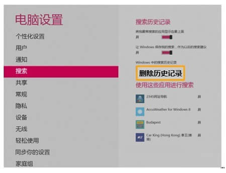 2.找到“搜索”,點(diǎn)擊“刪除歷史記錄”就可以了;