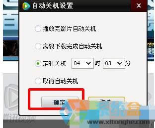 5、進(jìn)入自動關(guān)機(jī)窗口設(shè)置后選擇自己需要的定時關(guān)機(jī)方式,看完電影或者下載完成后自動關(guān)機(jī)。