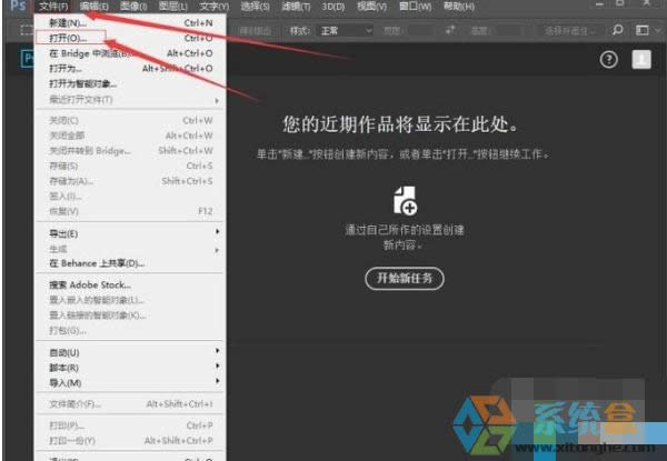 1、首先我們打開PS軟件,然后點(diǎn)擊“文件”,在菜單中選擇“打開”。