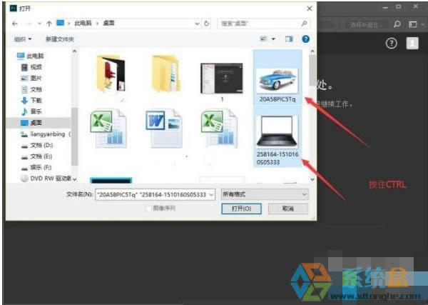 2、這時(shí)會(huì)彈出一個(gè)文件夾選擇窗口,打開我們需要的圖片,當(dāng)我們按住ctrl就可以一次性選擇兩張圖片打開。