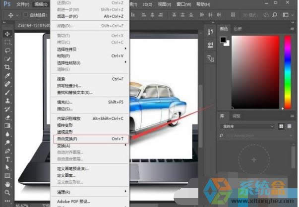 6、拖動(dòng)完成后點(diǎn)擊最上方一排的編輯欄,選擇“自由變換”,或者使用快捷鍵Ctrl+T。