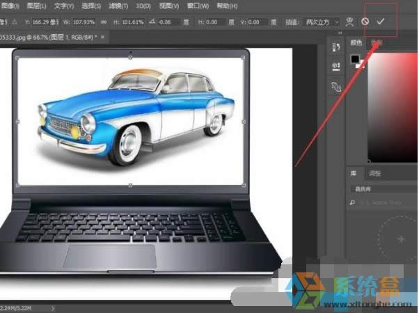 8、最后將圖片拖拽到合適的位置,點(diǎn)擊回車鍵即可,或點(diǎn)擊圖示箭頭處的√保存變換即可。