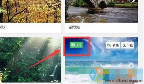 5、當然,在我們挑選時,如果我們看到喜歡的圖片,將鼠標放在圖片上方,我們就能看到圖片上會有一個預覽的按鈕,點擊此處就能直接查看該圖片作為壁紙后的效果,十分的方便。