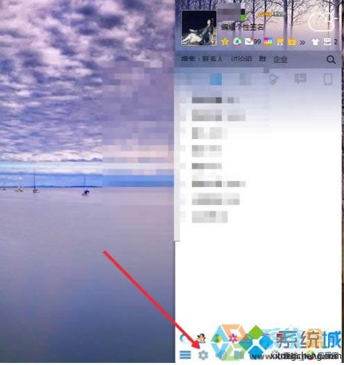 3、登錄成功后會(huì)有一個(gè)QQ主頁(yè)面板之后,在左側(cè)最小角有一個(gè)設(shè)置的圖標(biāo),點(diǎn)擊該圖標(biāo)。