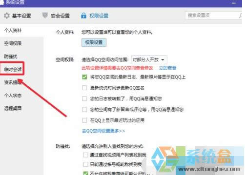 5、打開(kāi)權(quán)限設(shè)置后,在左側(cè)有個(gè)“臨時(shí)會(huì)話(huà)”,點(diǎn)擊該選項(xiàng),如圖所示。