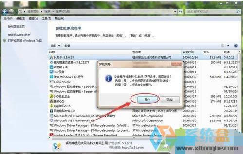 5、現(xiàn)在提示軟件正在運行,提示是否繼續(xù),選擇“是”,關(guān)閉軟件進(jìn)行卸載。