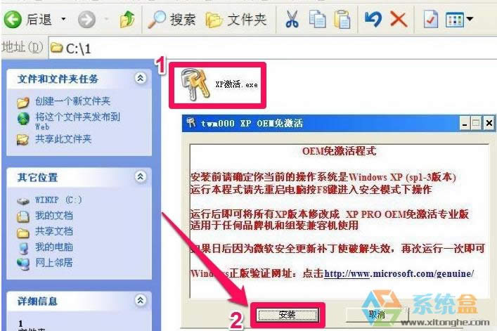 進(jìn)入安全模式后,找到先前下載的“XP激活.exe”程序,雙擊。