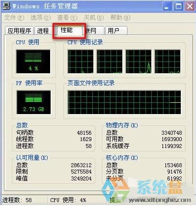我們可以同時(shí)按鍵盤上的CTRL+ALT+DEL,調(diào)出WINDOWS任務(wù)管理器,查看一下CPU的占用情況及內(nèi)存占用情況。