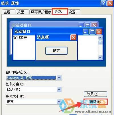 Windows XP是美國微軟公司研發(fā)的基于X86、X64架構的PC和平板電腦使用的操作系統(tǒng),于2001年8月24日發(fā)布RTM版本,并于2001年10月25日開始零售。其名字中“XP”的意思來自英文中的“體驗(Experience)”。該系統(tǒng)是繼Windows 2000及Windows ME之后的下一代Windows操作系統(tǒng),也是微軟首個面向消費者且使用Windows NT5.1架構的操作系統(tǒng)。 很多人在長時間使用電腦進行工作或娛樂后,總會感到眼睛非常的干澀不舒服,時間久了會對大家的視力造成影響。為了避免這種情況出現(xiàn),小編今天為大家分享一個設置保護視力的背景色的技巧。如何設置保護視力的背景色: 1、在桌面空白處右鍵,選擇屬性,打開電腦顯示屬性設置。 ![]() 2、切換到“外觀”標簽頁,點右下角的“高級”按鈕進入“高級外觀”設置窗口。 ![]() 3、在“高級外觀”設置窗口的下拉列表選擇“窗口”。 ![]() 4、點擊其他顏色,設置保護色:建議將色調設定為:85。飽和度:90。亮度:205。(飽和度可在90-123范圍之間,建議90為最佳。) ![]() 5、通過以上設置后,打開窗口,就會發(fā)現(xiàn)窗口顏色變?yōu)樽o眼的豆沙綠色。 ![]() 以上便是小編為大家分享的如何在WinXp電腦中設置保護視力的背景色的小技巧,希望大家能及早設置,在使用電腦時不會對大家的視力造成太大的損害。 Windows XP服役時間長達13年,產生的經濟價值也較高。2014年4月8日,微軟終止對該系統(tǒng)的技術支持,但在此之后仍在一些重大計算機安全事件中對該系統(tǒng)發(fā)布了補丁。 |